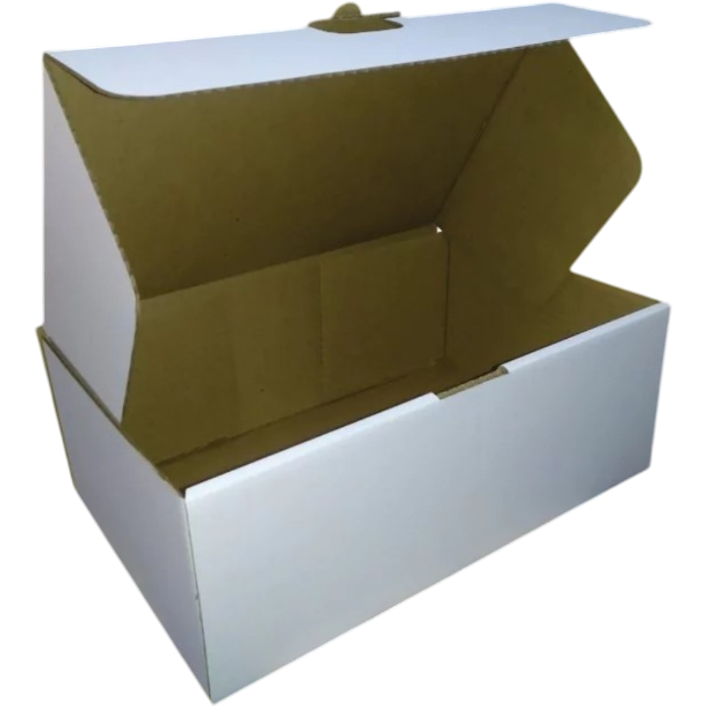 Informações das Embalagens: Modelo: TS 03 EXT B Material: Papelão Micro Ondulado Onda "B" Modelo: Caixa para correio Medidas internas: 32 cm Larg. x 20 cm Prof. x 12 cm Alt Cor interna: Pardo Cor externa: Branco Gramatura do papelão: 395g